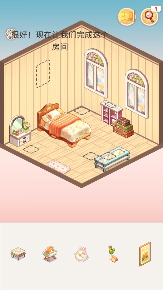 1、设计挑战,部分关卡有拼装挑战,玩家必须在限定条件下完成房间设计任务,考验创意和时间管理能力。