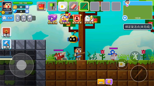 卷轴求生匠是一款横版沙盒生存冒险手游,以像素艺术风格打造复古经典的视觉氛围。玩家将扮演一名冒险者,在广阔的沙盒世界中自由探索,收集资源、制作物品、建造庇护所,同时与敌人战斗获取积分,体验生存与冒险的双重挑战。游戏支持联机互动,玩家可邀请好友共同探索世界,或参与紧张刺激的大乱斗模式,享受社交与竞技的乐趣,进入游戏后,左侧控制角色移动,右侧为攻击、跳跃及使用道具的按钮,点击左侧“制作”按钮,消耗收集的材料制作家具、工具、武器装备等物品,完成游戏内任务获取奖励,包括材料、金币或稀有道具,还能够解锁成就系统,提升角色等级,获取称号和特殊能力哦。