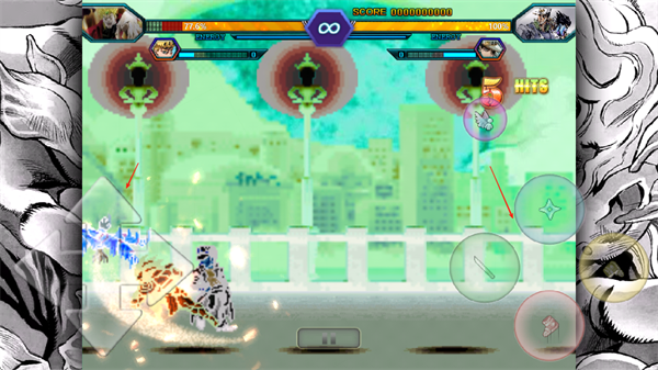 1、复古像素风格,各种场景都取自动漫,海量动漫角色自由选择畅爽街机格斗。