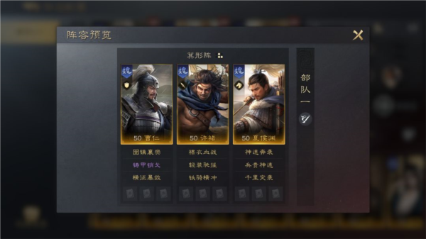 曹仁通过兼顾承伤和控制能力,确保了部队的整体生存能力。夏侯渊和许褚作为高爆发的武将,能够在短时间内快速击溃敌军,实现以低战损获得胜利的目标。