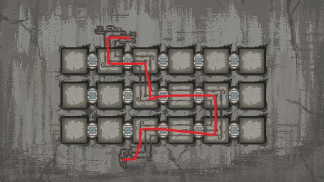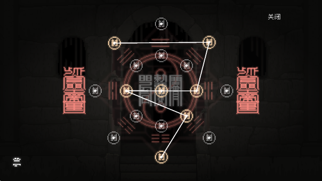 4、下了阶梯后一直向左走,可以看到一个洞口,解开洞口的谜题,如下图所示。
