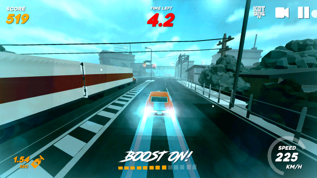 2、随后即可进入正式挑战,汽车会自动的加速不断前进。