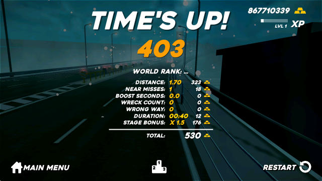 4、小心不要和其他汽车相撞,会导致游戏直接结束。