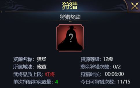 狩猎是稳定的高级武将将魂获取途径,非常重要!