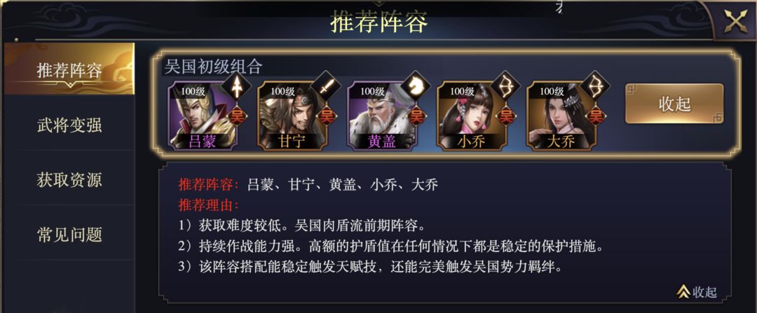 1> 获取难度较低,吴国肉盾流前期阵容;