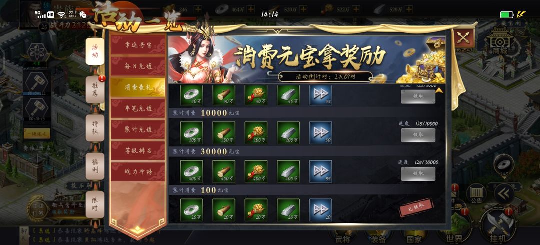 刚开始缺少经验书和突破丹(突破丹游戏里每突破十级都会送突破丹,所以优先突破第一队武将)可以在每日在线活动和开服活动达到一定条件领取