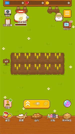 1、进入游戏后点击麦田按钮来收割小麦,收获一定数量的小麦可以获得小麦粉。