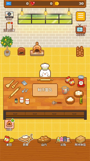 5、出售面包可以获得金币,点击采购按钮可以消耗金币来购买不同的配料制作面包。