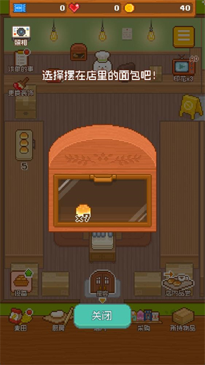 4、制作好面包后点击店内选项,然后点击面包店内的空盘子就可以上架你的面包了。