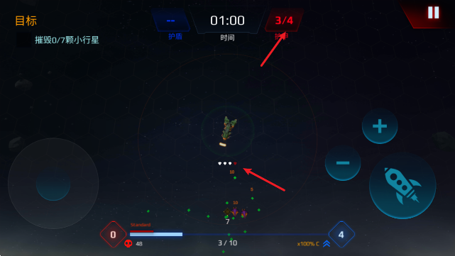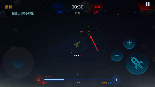 3、进入后左侧的摇杆控制移动,右侧长按按钮可以消耗能量加速前进。