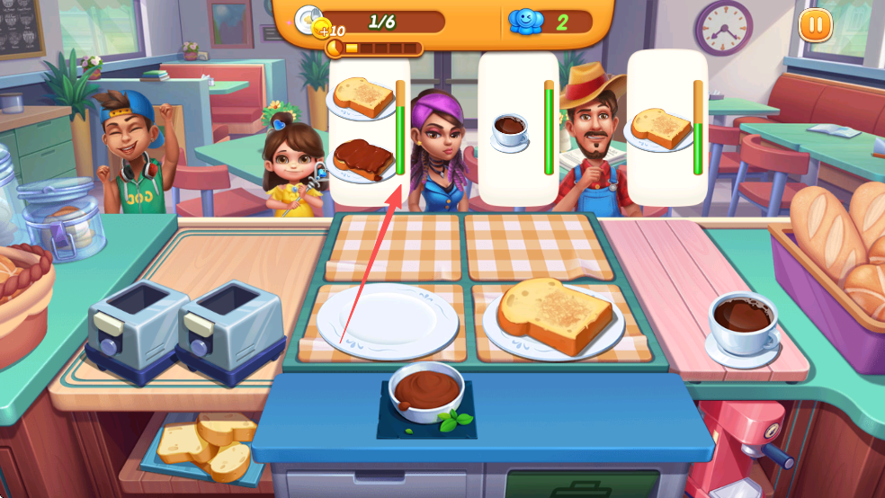 2、顾客:即需要大厨在限定顾客数量下完成关卡目标。