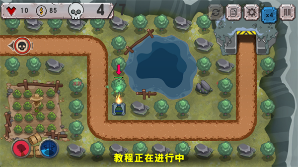 6、可以通过点击炮塔,然后点击周围的大树,来消灭大树,宽展空间,以便建造更多的炮塔。