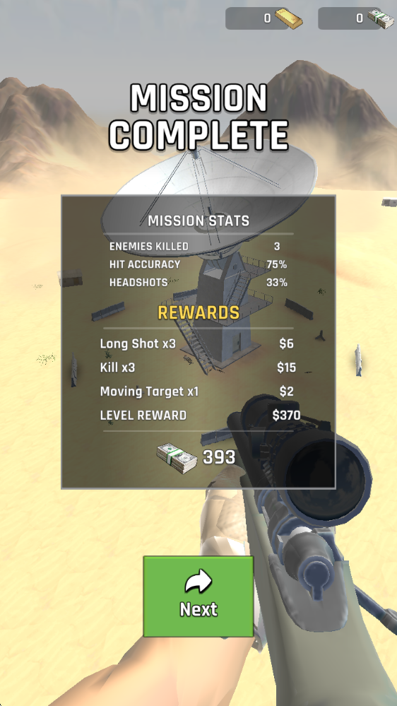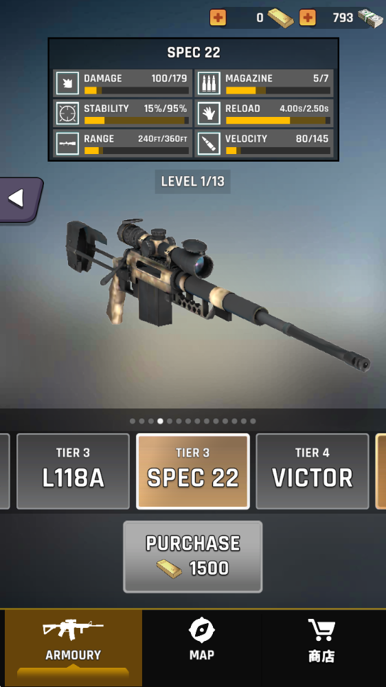 跟随主线任务推进剧情,解锁新地图和武器,体验狙击手的成长历程。