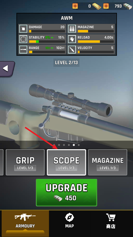 3、购买好的武器还可以对不同的部件进行升级,从而提升对应的性能。
