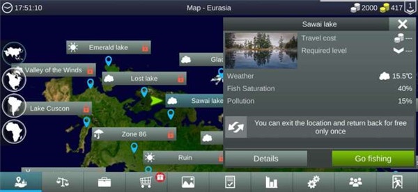 3、多探索新钓点解锁地图,高级区域常有专属鱼种和隐藏任务奖励。