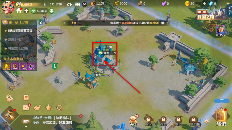 4、当领主还没有找到合适的军团阵型时,可以点击驻点的军团编辑,右上角的“阵型”使用官方推荐的阵型搭配。