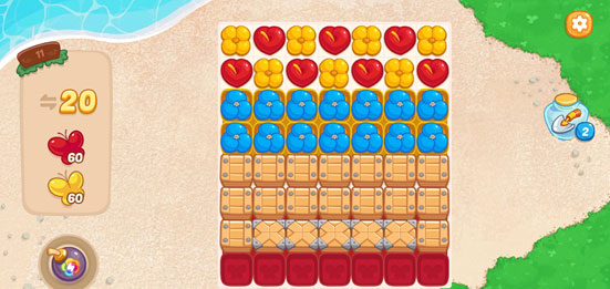 1、红色花朵*66,箱子*10、关卡步数:25步。