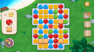当场上出现9个或更多相同的元素连接时,生成钻石道具。钻石的功能是消除所有相同颜色的花朵元素,帮助玩家清理更多障碍。