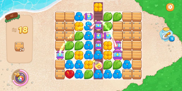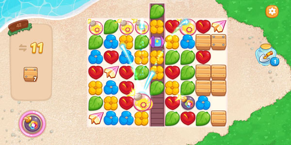 1、滑动连接同色花朵,触发绚烂特效与连锁反应;