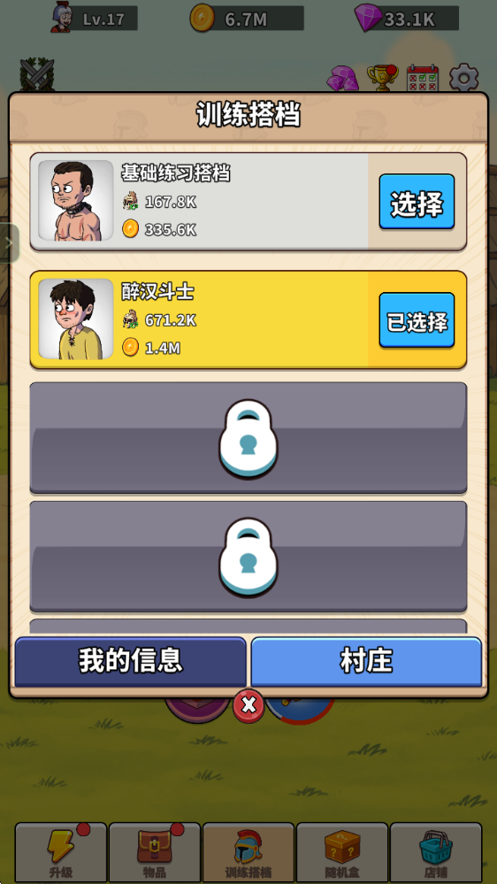 7、击败挑战对象后,我们就能够更换新的训练对象,经验和金币也会随之增加。