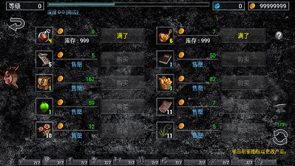 1、进入到地狱之窟手机官方版后,咱们有很多的金币,有钱就是任性先去商店大买特买