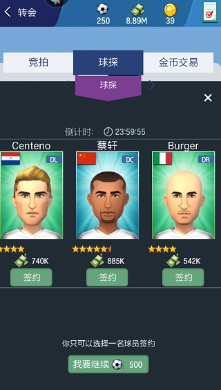 如果说球探搜索到的球员是种子球员后期有培养的天赋,那么经纪人签约来的球员就是夺目的球星。拥有强大的个人能力以及独有的技能,他们可能是我们足球帝国里的梅西或C罗。但好的球员肯定需要付出不小的成本,金币+正常签约费对一般玩家来说还是很高的;