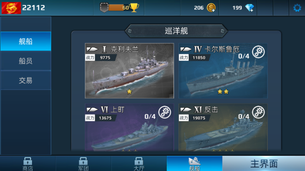 3、超多个战舰以及船员供玩家解锁使用,每一款战舰的属性都不相同。
