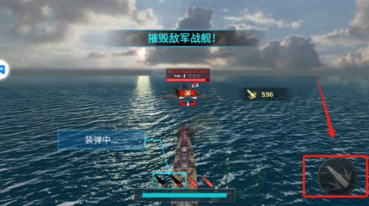 2、将战舰对准敌军并点击左下角的按钮即可开炮