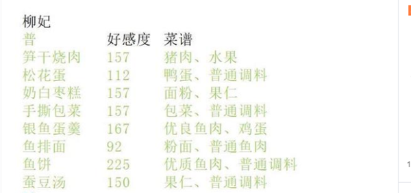 柳贵妃喜爱的菜谱包括:普:笋干烧肉、松花蛋、奶白枣糕、手撕白菜、银鱼蛋羹、鱼排面。