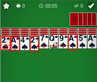 2、要尽量留后路,不要只顾眼前爽快,把各种花色的牌都乱七八糟叠一起了会对后面的游戏造成非常不利的影响。