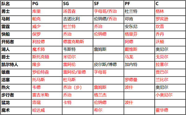 这里因为组合我们去掉了开拓者,雄鹿,活塞,步行者,猛龙,魔术等队套,一个优质的球队少不了球员间密集大量的组合加成,后面我们会重点说湖人队。