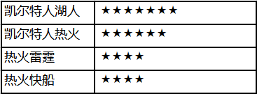 在第三阶段我们确定的优质组合顺序为:凯湖、热凯、热雷、热船、马热、马湖、雷船、湖船、湖勇。