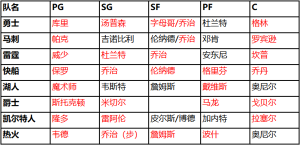 我们仅保留了五人中至少有三位大师以上球员的队套,湖人特殊也保留下来,后面会解释原因,接下来进一步筛选球队。