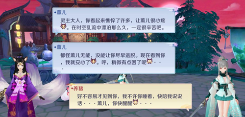 首先我们看到新手指导,第一个见到姬月小姐姐和你叨叨两句,然后出去逛逛的时候遇到你的薰宝,薰宝就是你的灵宠,做相关的任务让薰回到你的身边