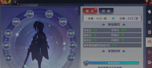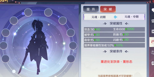 薰进化后,角色达到突破条件就可以突破了,突破可增加各方面的属性,境界的参悟是自动的,每一层都需要一定的时间去参悟,然后我们去激活,做任务,进而达到突破下一阶级的目的。