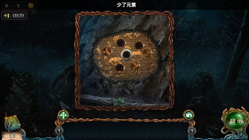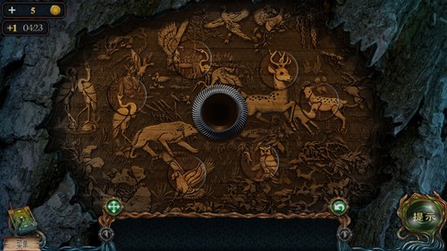 3、玩家要转动左右两个转盘,左边的转盘逆时针转三圈,右边的转盘要顺时针转动七圈,补全中间的图案就可以解开这个谜题了,就可以通关“迷失森林”了。