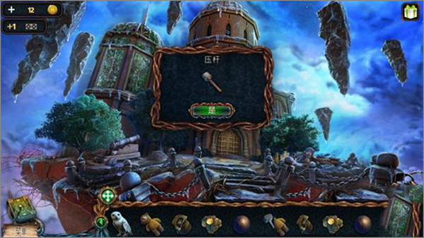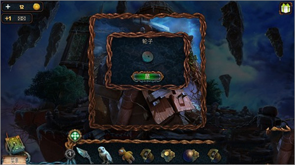 5、点击猫头鹰,再点击右上角悬浮的石头,可以让猫头鹰飞上去将推杆拿下来;