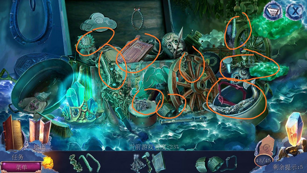 得到圆形标记,按到上面,得到书籍标志,打开小屋书桌上的书,按要求点相应图案。