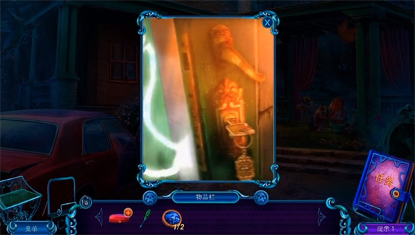 7、后备箱有很多东西,玩家需要在这里找到手套、灭火器、指纹、手电筒、文件夹、眼镜油炸圈饼、放大镜、相机、腕表、绳子、鬼魂物品,最高效的方法是随便乱点,因为没有错误惩罚,所以这种方法反而是最快的;