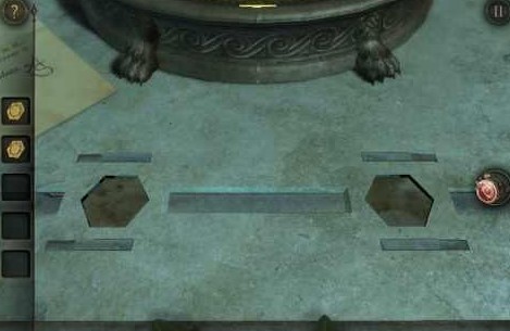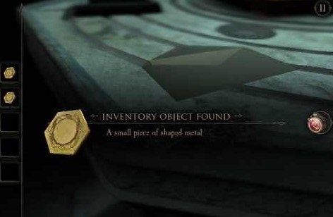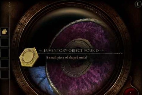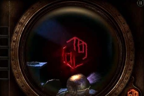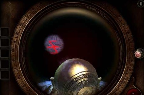 18、将扳手插入右下方的孔里,摇动扳手,圆形的片即将散开,这时候呈现出一个木板,用目镜观察得到一个图纹(类似拼图,跟第二章类似,这里无法给出图片,玩家稍微摸索下即可拼出图形)