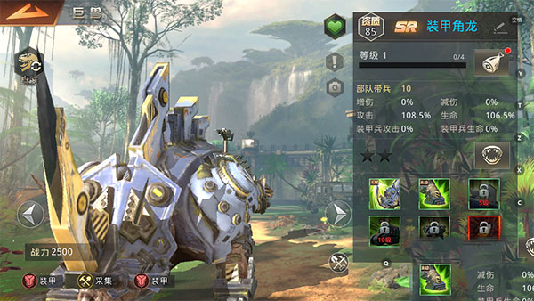 第三个推荐的是装甲角龙,这个单位在获得装甲之后实力也获得了提升。开战之后的冲撞会将敌人的步兵单位给冲散,带来一定的输出压制效果。在伤害能力上是近战的,拥有多个控制能力,可以很好的克制敌人的远程战斗单位。