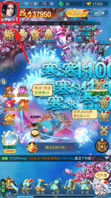 玩家登录到游戏主界面,点击在主界面左边的闯关按钮,点击宝箱打开收益界面,玩家每下线一段时间再次返回游戏后就可以领取挂机收益,最多可以储存一天(24小时)的经验收益。