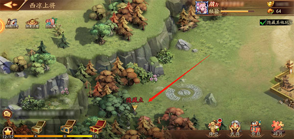 本章隐藏点位于地图最右上角处的树丛边,进入隐藏地图不仅能获取大量资源,击败【战熊】还可以解锁游历簿哦~