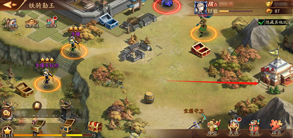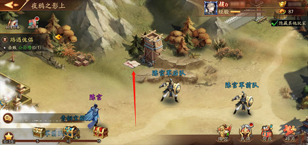 本章隐藏点为线索事件,需要先拿到线索才能触发,线索位于地图上方的山脚下,拾取散落的纸页,根据指示来到地图左下方貂蝉右侧石阶旁的山脉,即可触发隐藏点。