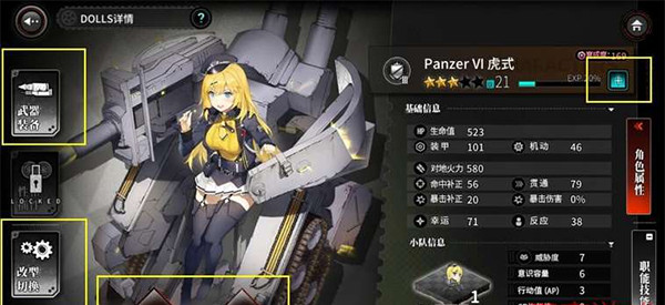 人偶的养成主要体现在三个方面:升级,改造,突破