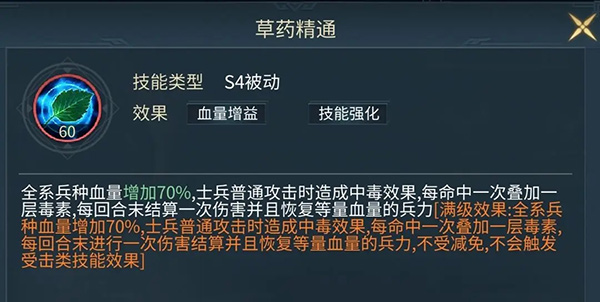 他这个被动技能非常强大,无视一切免伤免疫,而且不看对面智谋防御值。伤害量和别人没关系,只和两个因素有关,自己的智谋值以及士兵数量。因此华佗情缘越高越强,低情缘怕南仙,高情缘不怕。马的术法加伤对他无效,套装的术法擅长对他无效,天赋技能术法加伤无效。想要提升伤害量唯一的方法就是提升他的智谋值,别的都没用。他的士兵需要有多次出手。所以配兵这样配,白马,床弩,轰天雷,机关木兽,四方阵平均带。三个器械方阵是为了远程回合触发被动伤害。白马是因为六级白马义从一回合可以砍三刀。