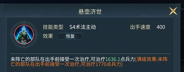 星级特性回血3000,中规中矩。刀兵免伤50%好用。