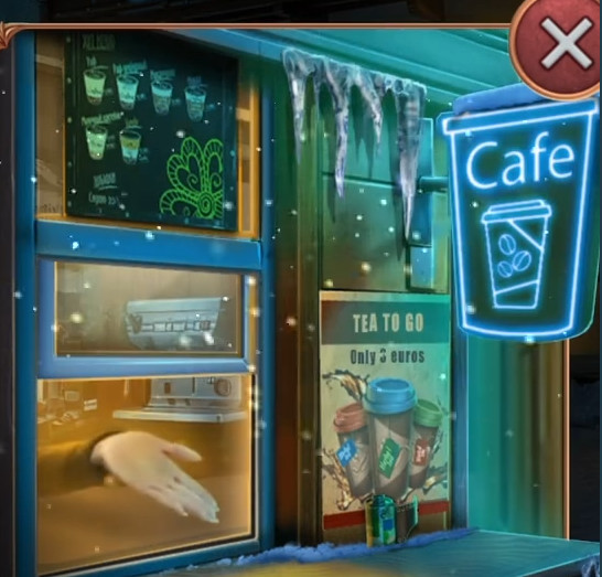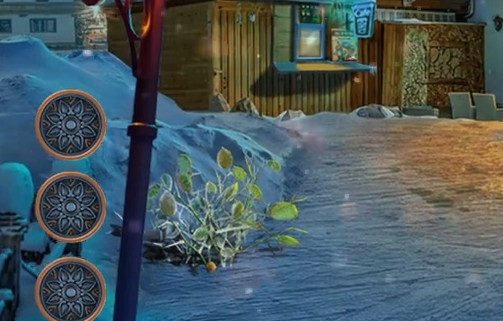 在旁边有一个咖啡店,热咖啡可以解冻,但是需要3个金币,目前咱们身上的金币不足,我们先调查左下角的的花丛。在花丛的下面咱们可以找到一枚隐藏的金币。这样我们只差一枚金币了。