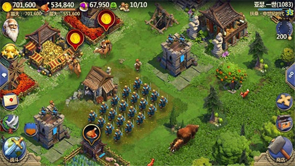 战争与文明是一款以人类文明演进为背景的SLG策略手游,玩家将化身文明领主,从原始部落起步,通过建造资源设施,逐步推动文明跨越黎明,游戏融合模拟经营与全球实时对抗,八大特色文明各具专属兵种与建筑风格,搭配50V50超大规模联盟战争及深度资源管理系统,打造独一无二的文明帝国!