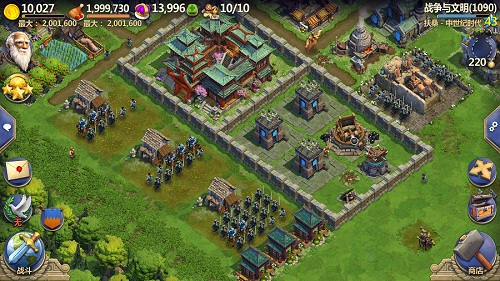 战争与文明是一款融合模拟经营、战斗策略与文明发展的SLG(策略类游戏)手游。游戏以人类文明演进为主线,玩家将扮演文明领主,从原始黎明时代起步,逐步发展至未来太空时代,体验跨越千年的文明进程。游戏支持全球玩家同服竞技,通过建造基地、发展科技、组建军队、参与联盟战争等方式,争夺世界统治权,提供大不列颠、罗马、中国、日耳曼、高丽、雅典等八大特色文明,每个文明拥有独特的建筑风格、兵种和历史传奇帝王,游戏分为黎明、石器、青铜器、铁器、古典、中世纪、火药、工业、信息、太空前夜等时代,每个时代解锁新建筑、兵种和科技,推动文明进步,战斗节奏紧凑,强调策略布局,玩家需根据对手防御调整兵种搭配和进攻路线,支持副本征伐、PVP掠夺和50V50超大型军团作战,结合资源管理、科技研发、建筑升级和英雄培养,玩家需平衡经济与军事发展,打造个性化文明。